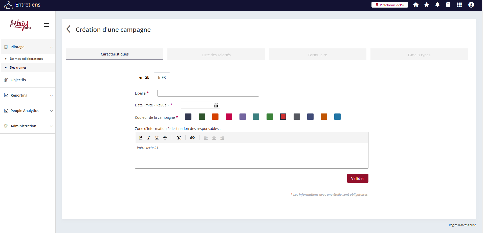 La création d’une campagne de revue de personnel ne diffère pas beaucoup de celle d’une campagne d’entretiens. Il n’y aura néanmoins qu’une seule date à définir pour la seule phase active dans ce type de processus.