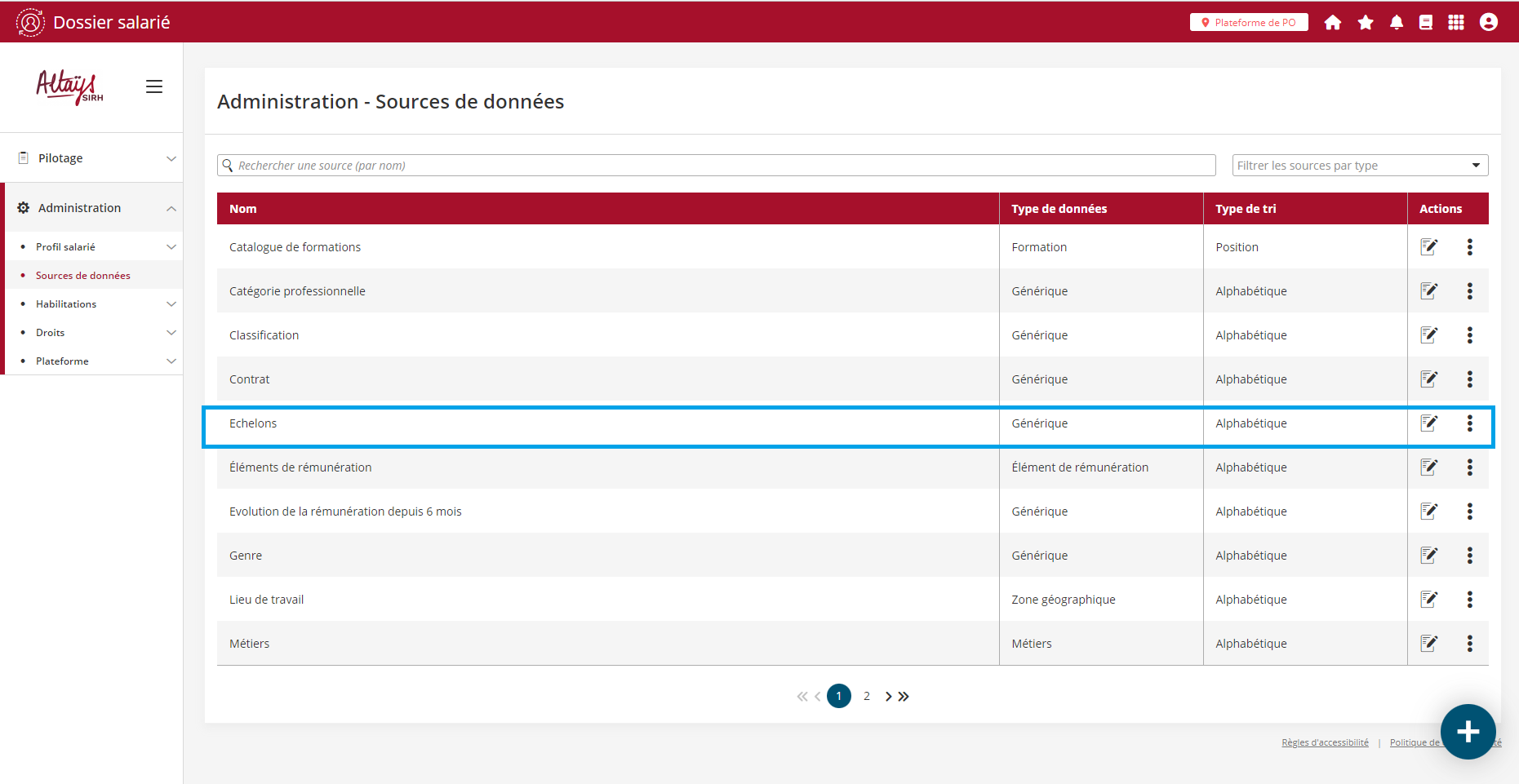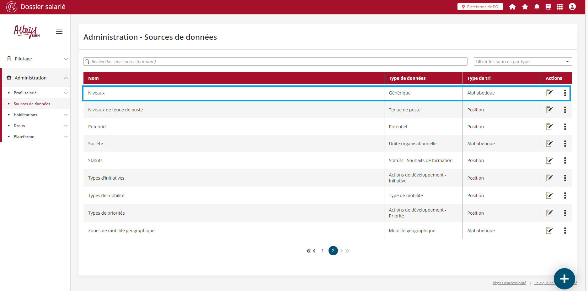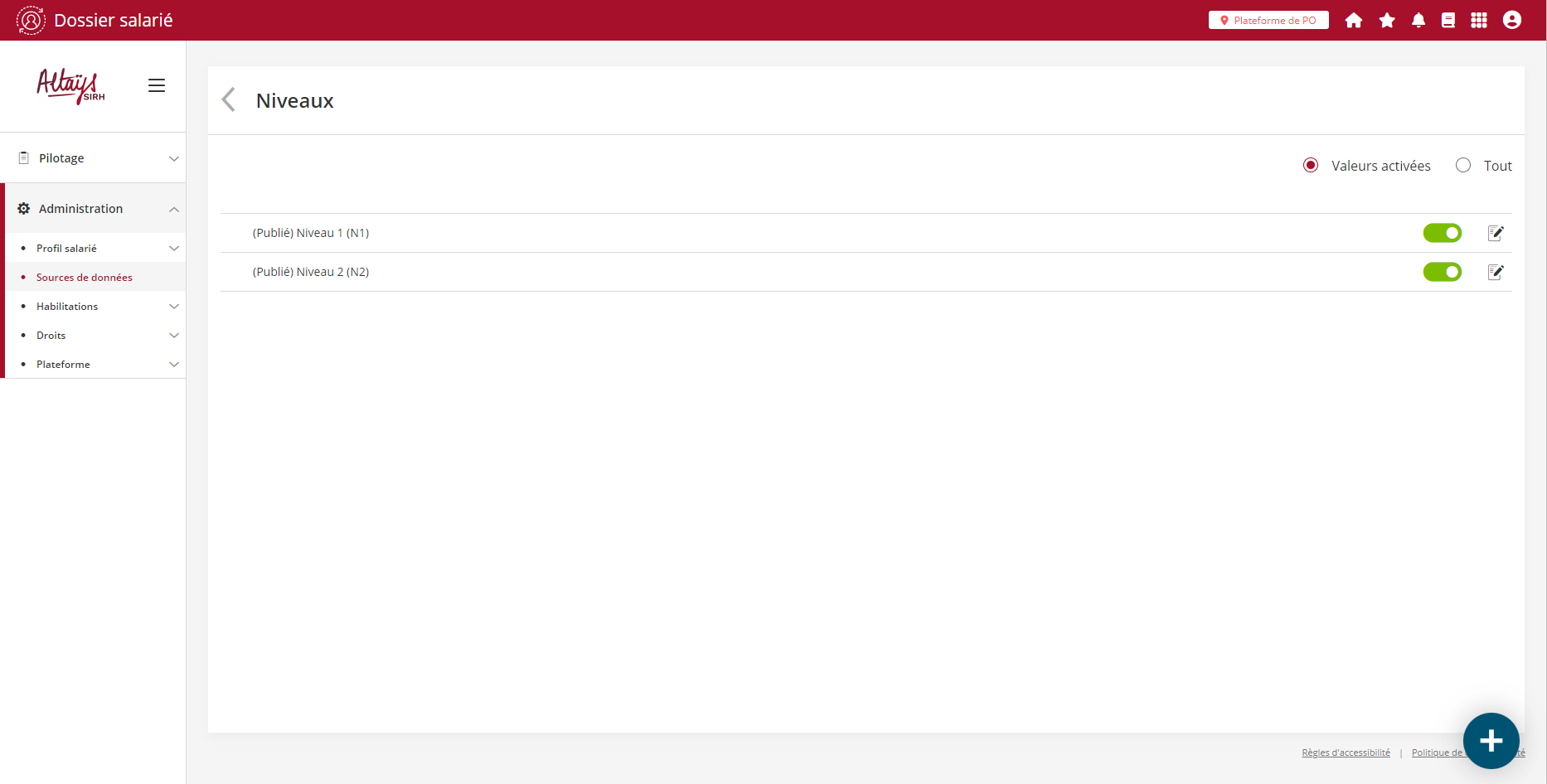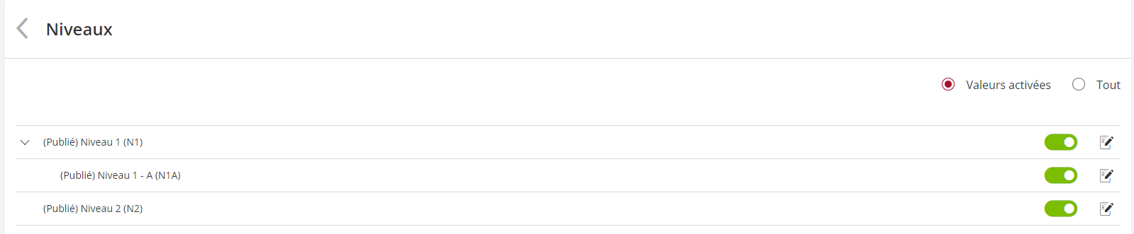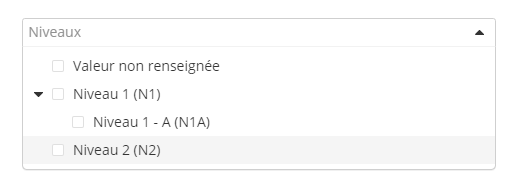 Cette relation parent / enfant est ensuite visible dans l’administration des référentiels avec la possibilité de déplier / plier les niveaux enfants.