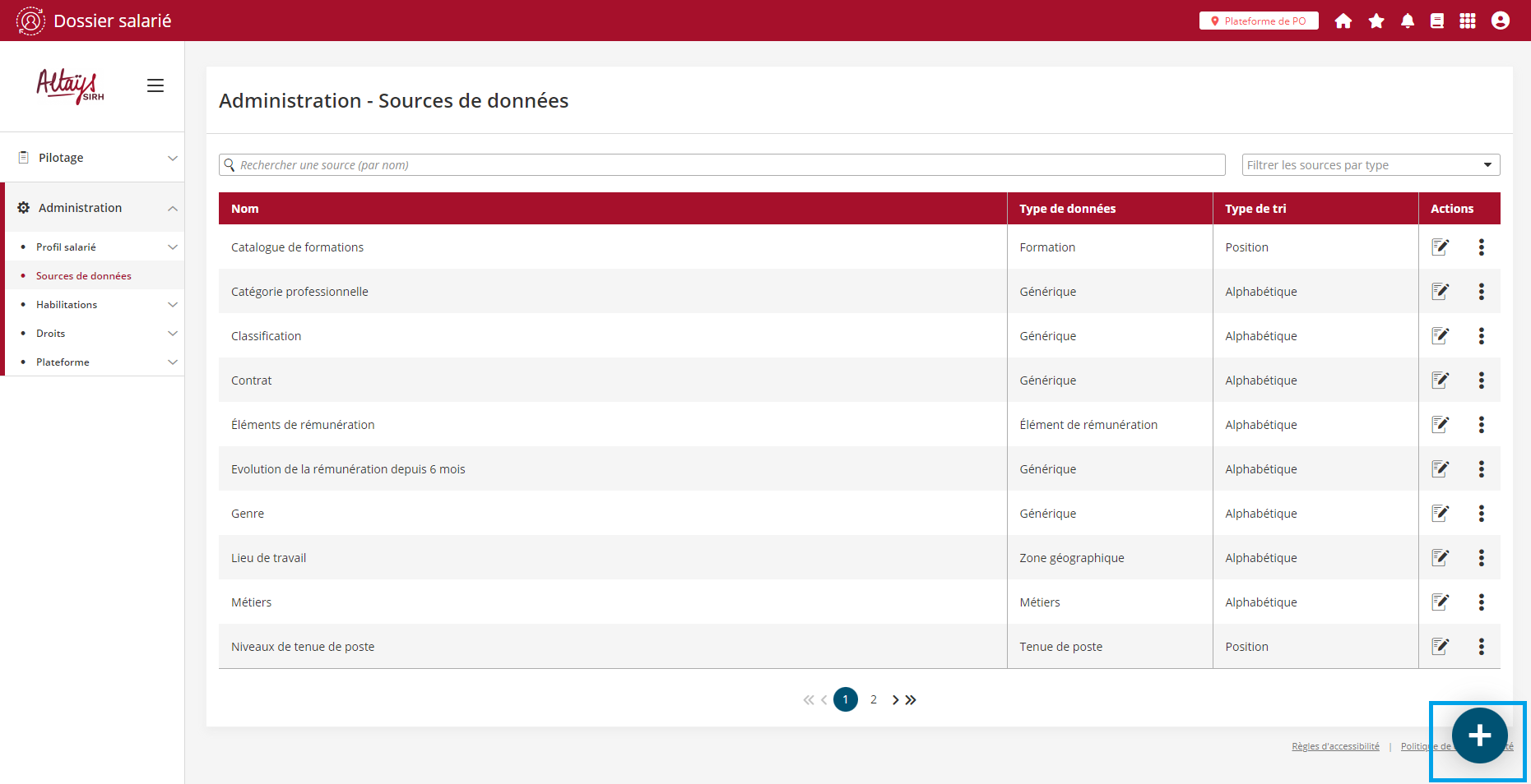 Le bouton en bas à droite de la page permet d’ajouter un référentiel à la liste des référentiels actifs de la plateforme.