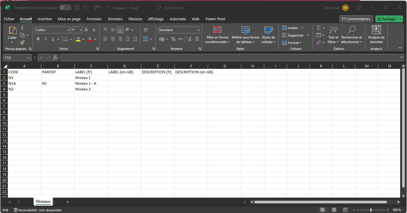 • un code (il doit être unique pour ce référentiel) qui servira à l’identification technique de la donnée