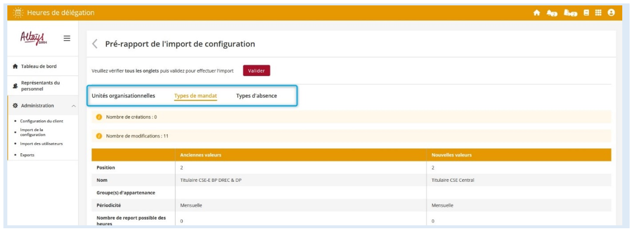 Avant l’import, un pré-rapport vous sera affiché, avec un onglet par référentiel. Prêtez bien attention à tous les onglets du pré-rapport avant de confirmer l’import.