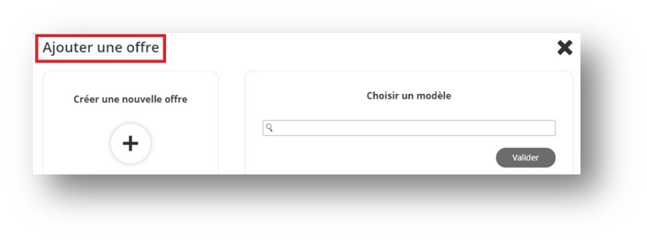 Une fenêtre vous propose deux possibilités : partir d’un formulaire vierge via « Créer une nouvelle offre » ou partir d’un template enregistré en amont via « Choisir un modèle ».