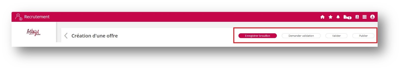 Le champ « Recruteur principal » est automatiquement complété avec le nom du rédacteur de l’offre.