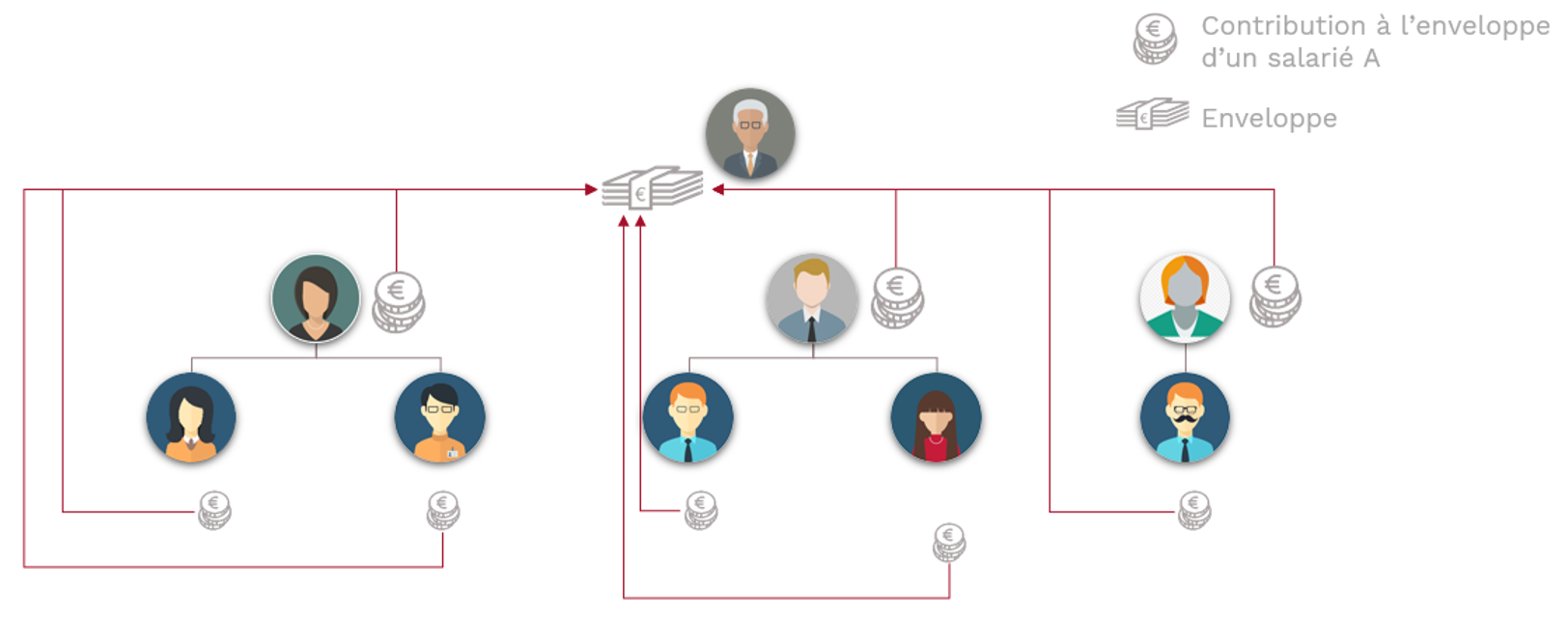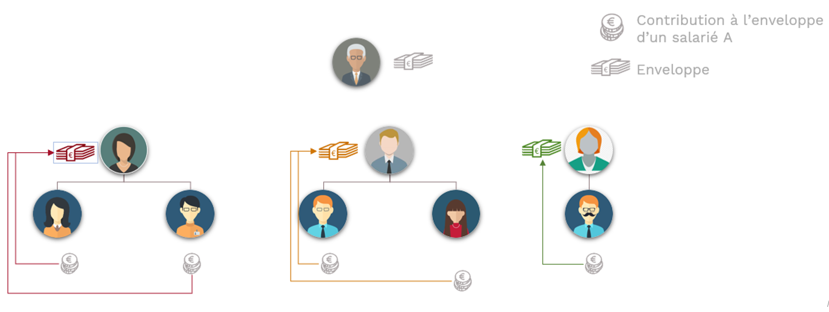Chaque manager dispose d’une enveloppe correspondant à la somme de la contribution de chaque salarié éligible de son périmètre (tous ses N-x).