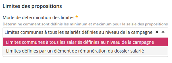 • Des limites communes à tous les salariés. Elles seront alors à définir au niveau de l’exercice, puis potentiellement surchargées à la mise en œuvre sur la campagne.