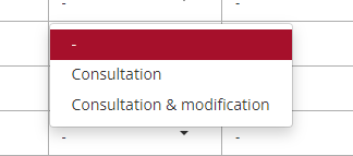 👆 À noter : le droit de modification n’est pas géré dans cette page pour les rôles salarié et responsables, il est géré dans la page “profil salarié” décrite précédemment.